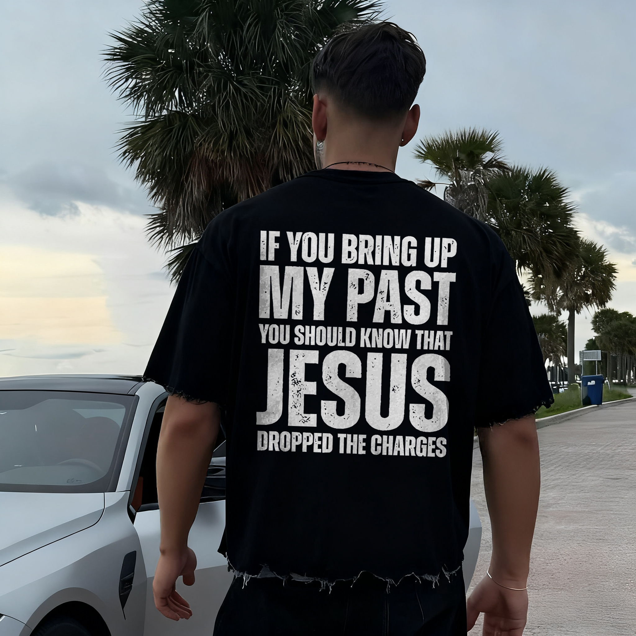 If You Bring Up My Past You Should Know That Jesus Dropped The Charges Printed Men's T-shirt