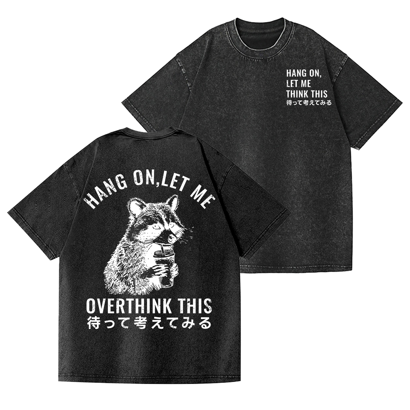 Racoon Vintage Wash Japanese Design Back Art T-Shirt