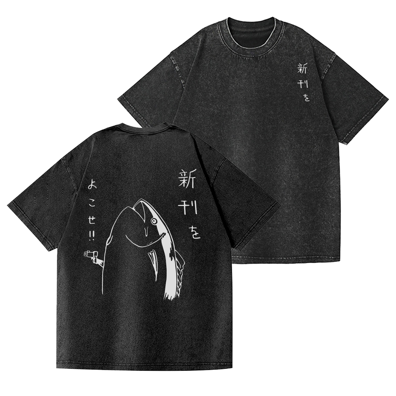 Fish Vintage Wash Japanese Design Back Art T-Shirt