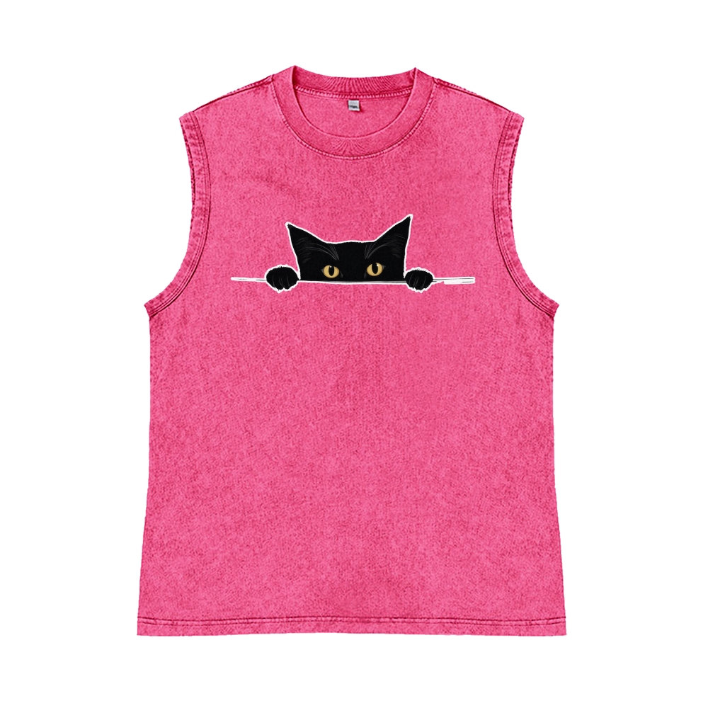 Black Cat Pure Cotton Wash-Dyed Sleeveless Tank Top