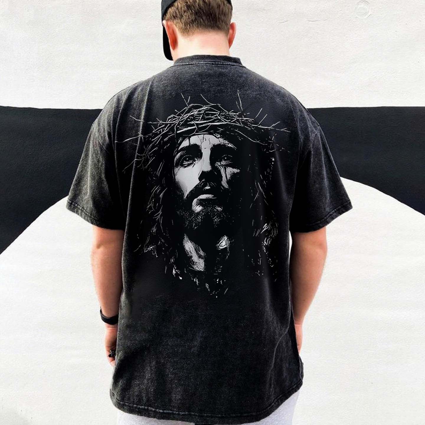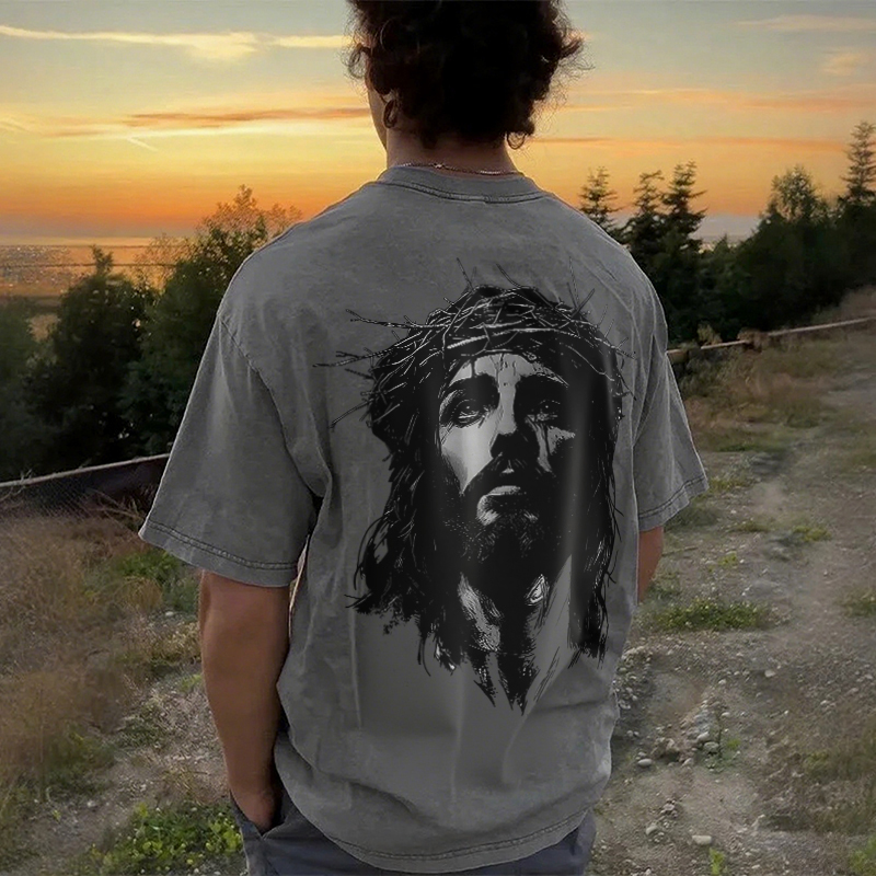 Jesus Christ Printed Men's Washed T-Shirt