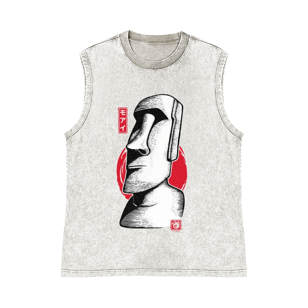 Moai Pure Cotton Wash-Dyed Sleeveless Tank Top