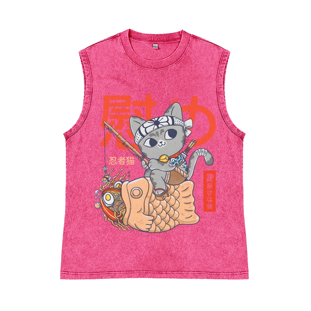 Ninja Cat Pure Cotton Wash-Dyed Sleeveless Tank Top